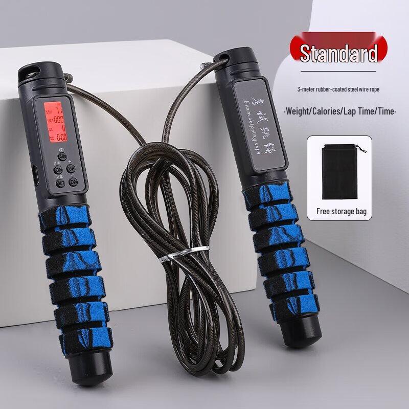 This smart counting dual-use jump rope features a durable 3-meter steel wire and a sleek mixed black and blue design. Perfect for various workouts, its intelligent counter helps track your progress.
