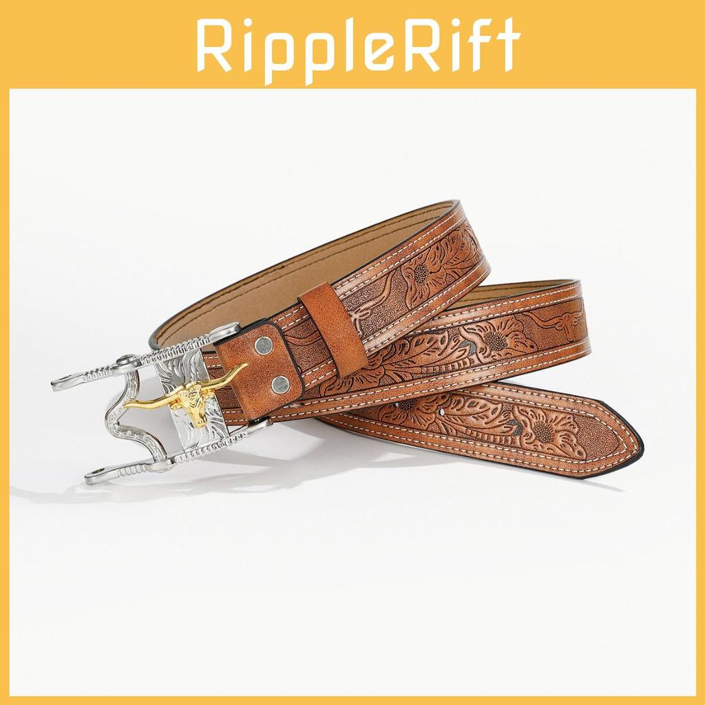 Introduce the latest member of our fashionable and high-quality men's accessory series - European and American men's belts. This bohemian style belt is perfect for adding a retro style to various clothing, with its unique alloy buckle printed with a cow head tribal pattern. This belt is made of high-quality PU leather, which is not only fashionable but also durable.