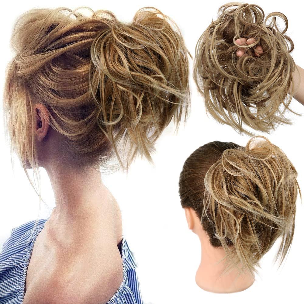 Tousled Updo Messy Bun Ponytail With Elastic Rubber Band Synthetic Scrunchies Hairpieces for Women