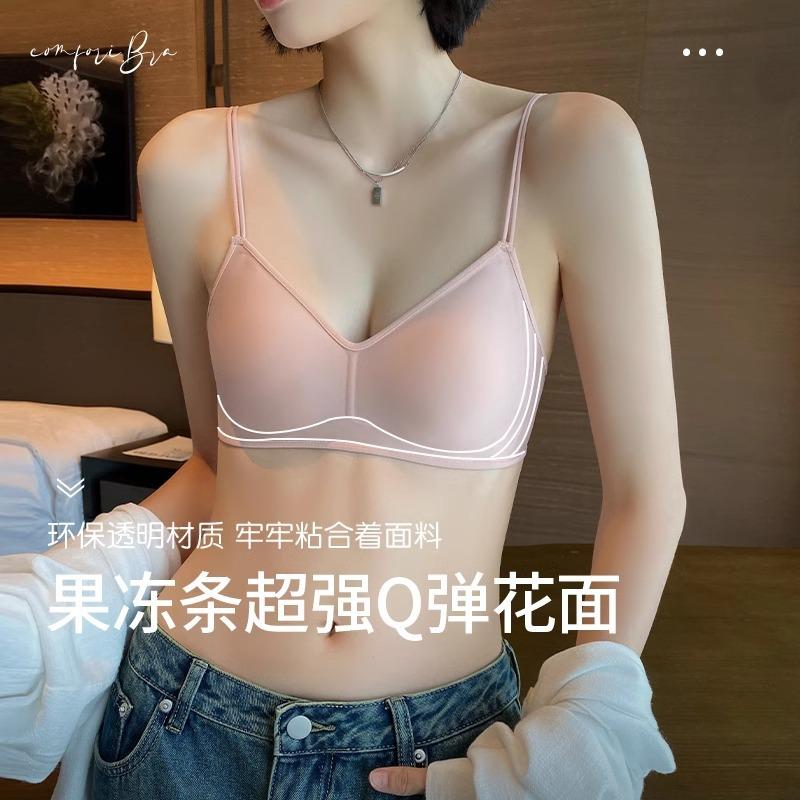 Thin shoulder strap underwear, women's thin small breasts, comfortable without steel ring, rabbit ear cup, light jelly strip, seamless bra.