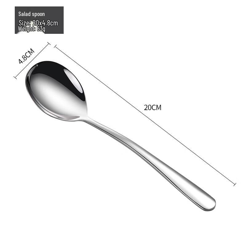 This elegant and durable thickened salad spoon is crafted from high-quality 304 stainless steel. Featuring a long handle, it's perfect for serving salads, enjoying soup, or general dining.