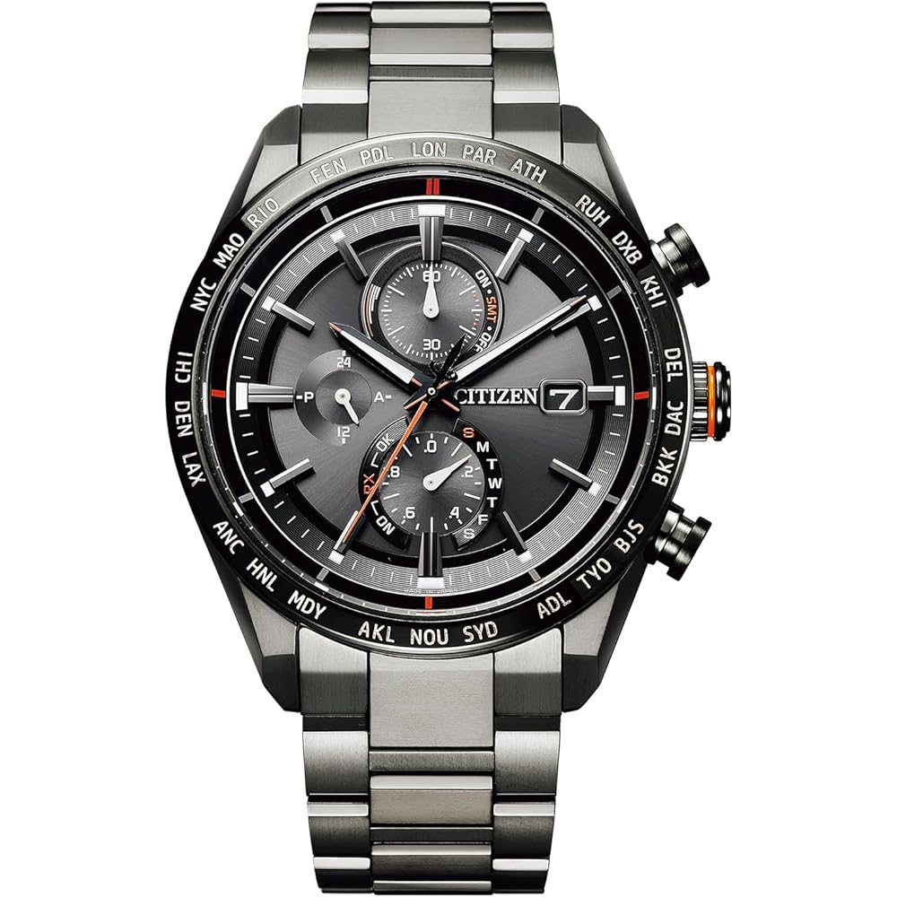 [Product Details] Light-powered Eco-Drive radio-controlled watch, accuracy of ±15 seconds per month (when not receiving radio waves), daytime and European/American radio reception, case/band material: Super Titanium, sapphire crystal, water resistance to 10 bar, metal allergy resistant, magnetic resistance, luminous hands and indexes, fit adjuster, power save function, perpetual calendar, day & date display, direct flight