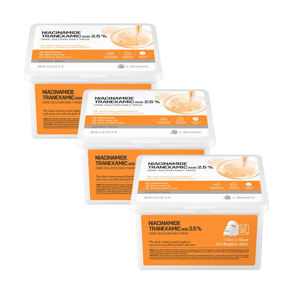 BEAUSTA 1 pack a day, tranexamic acid 2.5% dark solution mask pack, 30 sheets x 3