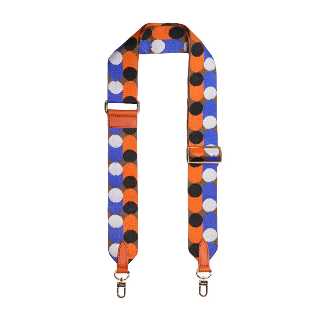 [DDBody] Genuine Leather Shoulder Strap, Single Shoulder Strap for Bags, Embroidered, Thick, Stylish, Original Design for Women (OrangeBlue Polka