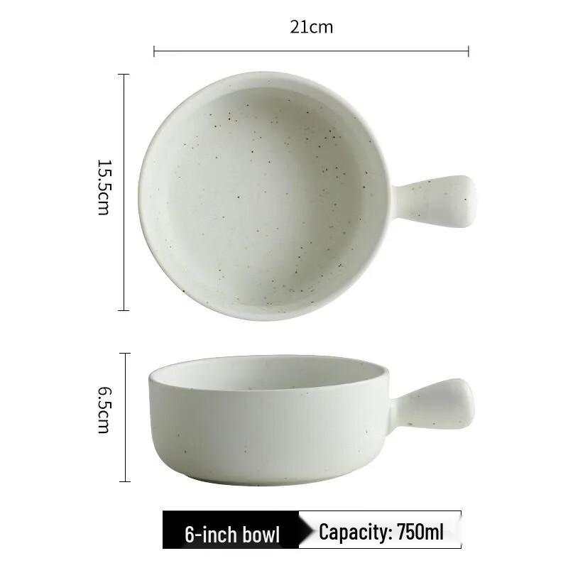 This versatile Japanese-style ceramic bowl with a convenient handle is perfect for noodles, ramen, or even baking. Crafted from durable ceramic with a charming color glaze, its cute design makes it a delightful addition to any kitchen or student's dorm.