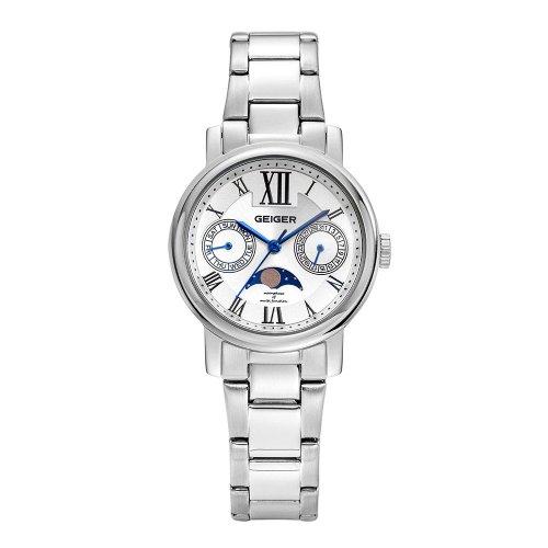 ⌚ OverviewThe GEIGER GE8025WS_L is an exquisite women's timepiece, elegantly featuring a moonphase complication within a sophisticated metal design. It beautifully blends classic horological elements with a contemporary aesthetic, making it a perfect accessory for the discerning woman.