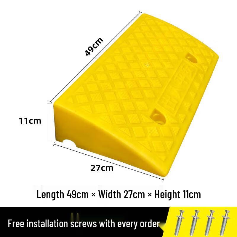 Durable plastic ramp mat designed to facilitate smooth transitions over steps, curbs, and uneven road surfaces. Provides a reliable slope for various access needs.