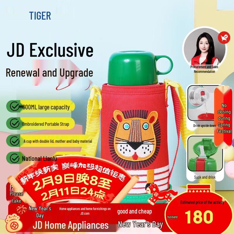 The TIGER Little Lion Children's Insulated Water Bottle is designed for children and students, perfect for keeping drinks hot or cold. Made with durable 304 stainless steel, it features a unique 'one cup, two lids' design, offering both a convenient straw lid and a secure screw-on lid for versatile use. Its portable 600ml capacity and charming Little Lion design make it an ideal companion for school and outdoor activities.