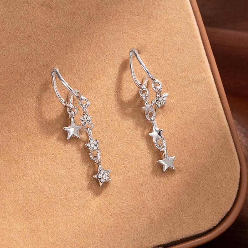 French Cold Wind Super Flash Geometric Pentagram Fringed Earrings Personalized Asymmetry Light Luxury Fashion Temperament Ear Jewelry