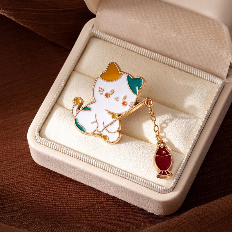 Childlike Kitten Fishing Brooch Cute Japanese Badge Cartoon Pin Buckle Pin Decoration Student Schoolbag Pendant