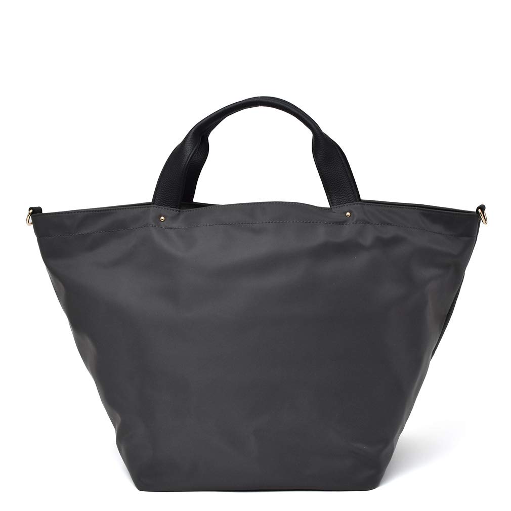Gratante Genuine Leather Handle 2-Way Large Nylon Tote Bag for Women, Commuter Bag (abb-g0051) (Charcoal)