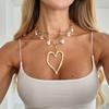 Exaggerated Metal Big Love Pendant Necklace, Fashionable Baroque Imitation Pearl Collarbone Chain Necklace