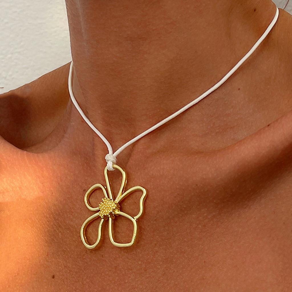 Accessories Simple Flower Pendant Collar Women'S Personality Sweet Cool Metal Hollow Big Flower Choker Necklace