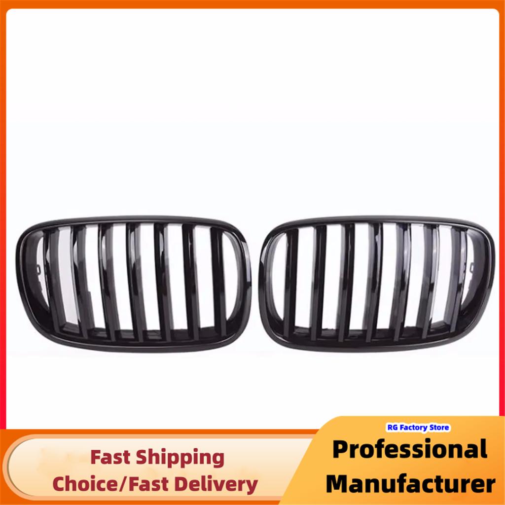 Single Slat Gloss Black Racing Grill Cover For BMW E70 E71 X5 X6 2007-2013 Front Bumper Kidney Sport Grille