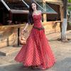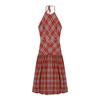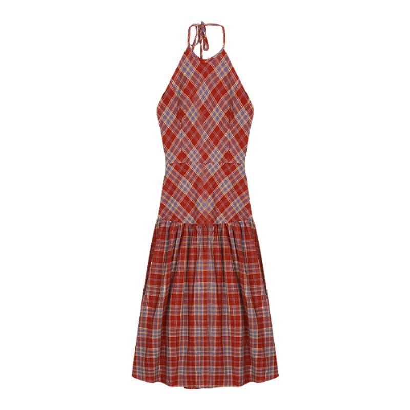 Red Plaid Neck Suspender Dress Women's Summer Temperament Backless Strap Waist Thin Seaside Vacation Dress