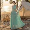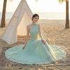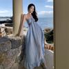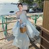 Travel Wear Seaside Vacation Beach Suit Skirt French Temperament Blue Chiffon Slanted Shoulder Top Two-piece Set