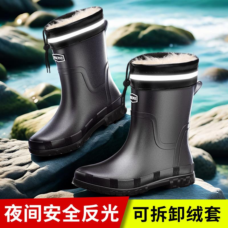 Bundle mouth men's medium and short rain shoes night men's waterproof mouth with reflective strip fishing men's boots integrated fashion