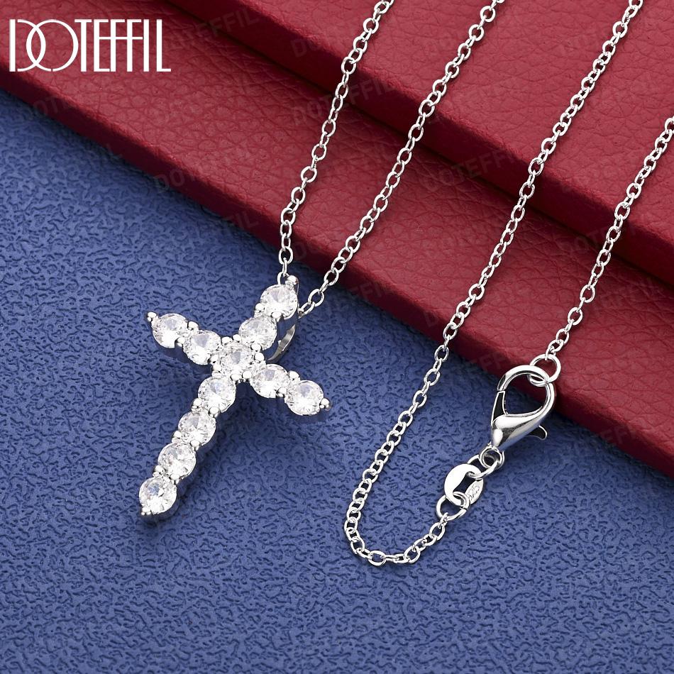 925 Sterling Silver Cross AAA Zircon Pendant Necklace Fashion Jewelry