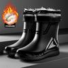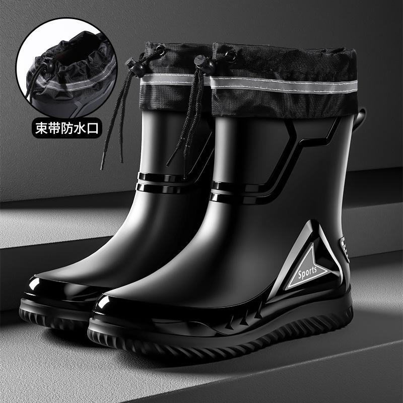 Rain shoes men's medium tube non-slip waterproof shoes new fashion outdoor water boots thermal short tube rubber shoes men