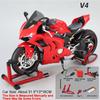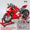 Large 1:7 Scale V4 V4R Motorcycle Model Toy Linkage Steering Shock Absorption Spray Motorbikes Sound Light Models for Kids Toys