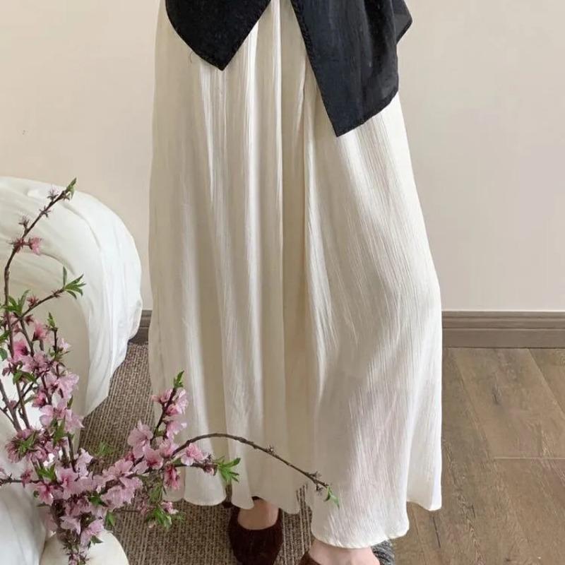 Textured Pleated Skirt New Chinese Style Slimming High Waist Loose and Versatile Long Skirt