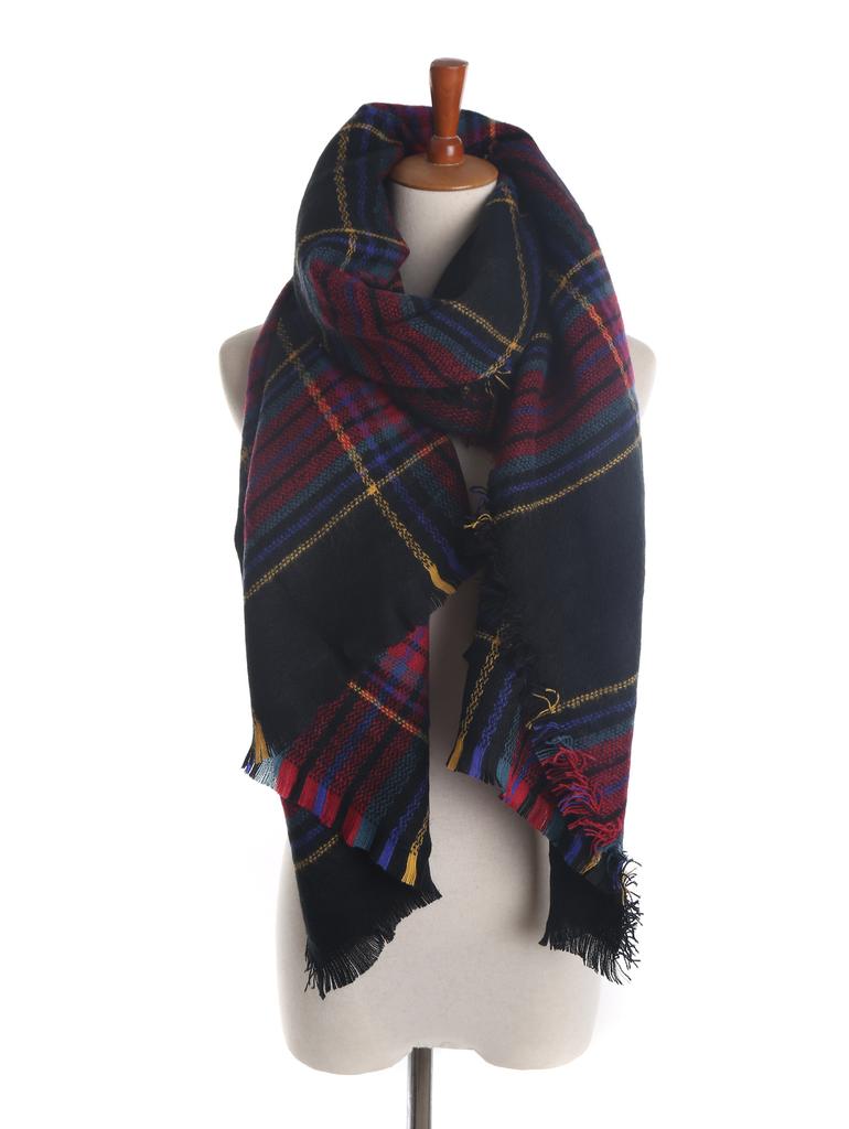 Style Plaid Scarf Women's Autumn and Winter Thick Wind Black Color Striped Imitation Cashmere Shawl