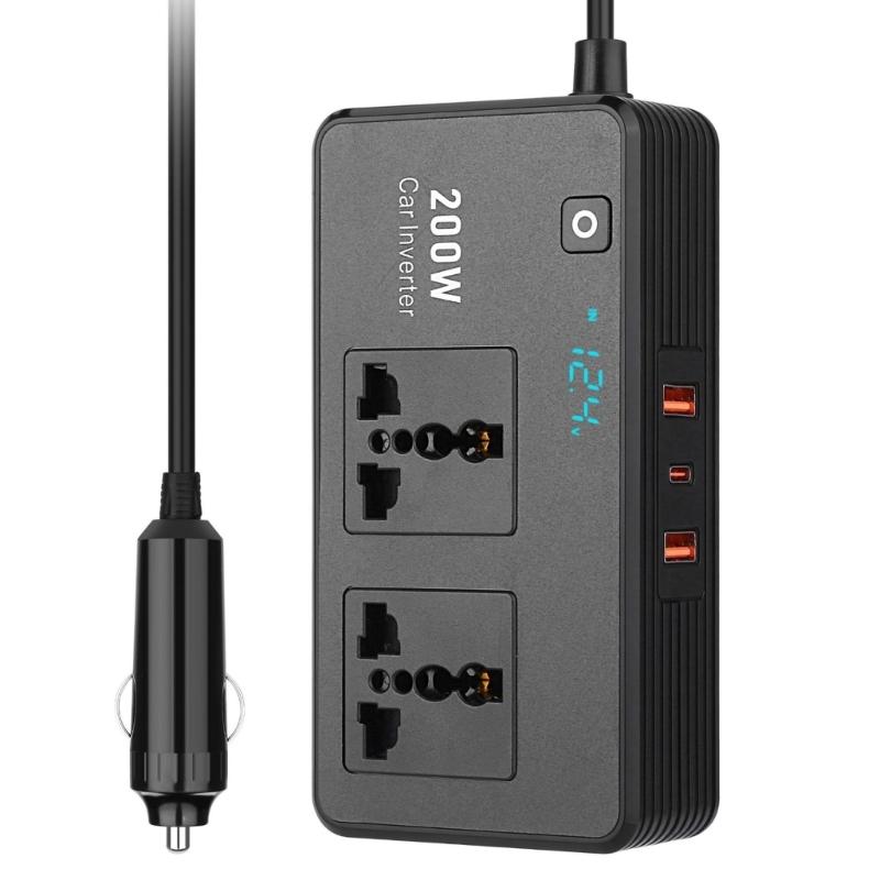 Compact 200W Car Chargers Inverter With Voltage Monitor And Fast Charging USB C Outlet Car Power Inverter for Charging