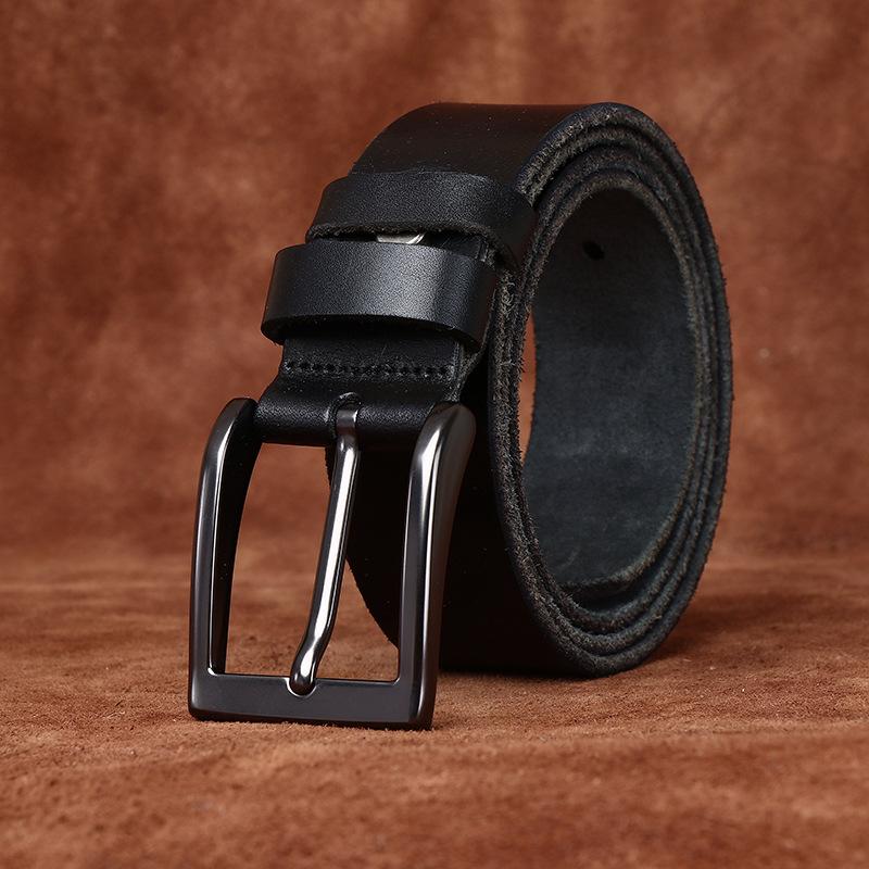 3.8Cm Wide Washed Retro Belt Men'S Genuine Leather First Layer Cowhide Pin Buckle Simple Casual Jeans Belt Men'S