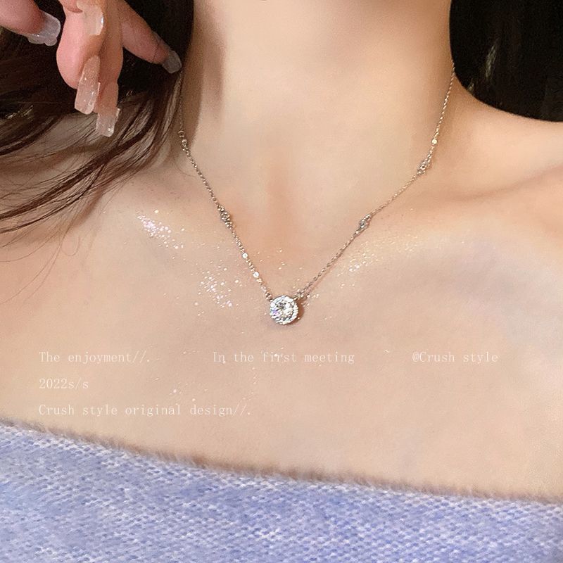 High sense light luxury single diamond necklace women's fashion commuting exquisite Internet celebrity star point small round diamond collarbone chain