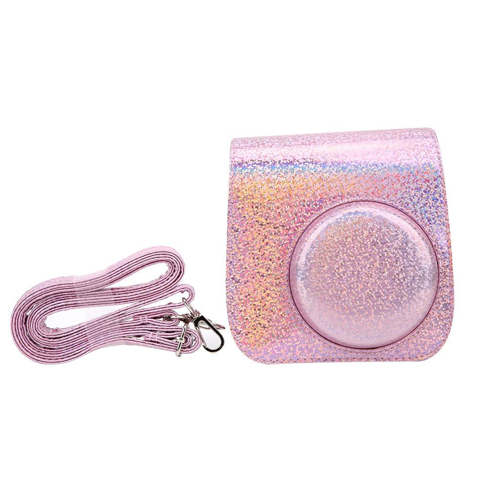 Sparkling Color Vintage PU Lther Camera Portable Bag Case ive Pouch Cover with Shoulder Strap For 8/ 8+/ 9(Sparkling Pink )