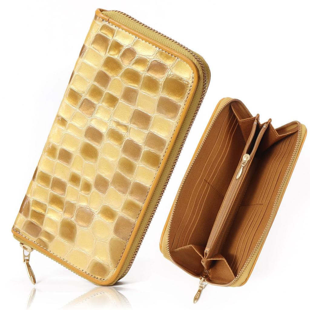 Blanc Pomme Women's Stained Glass Long Wallet, Made in Japan, YKK Zipper, Genuine Leather, Round Zipper, Colored Piping, rp-1001, Champagne Gold