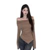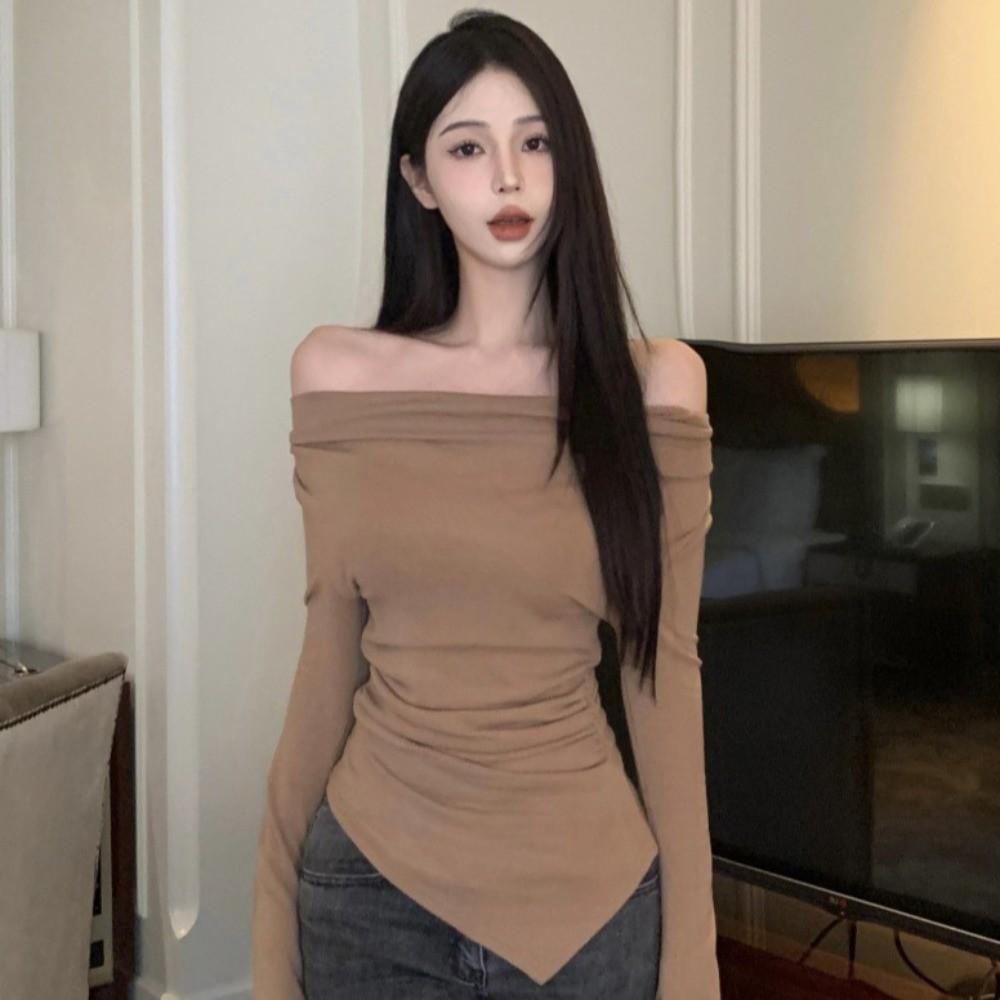 Korean Y2K Ins Bottoming T-shirt Off-shoulder Long Sleeve Tops Spring Autumn Winter