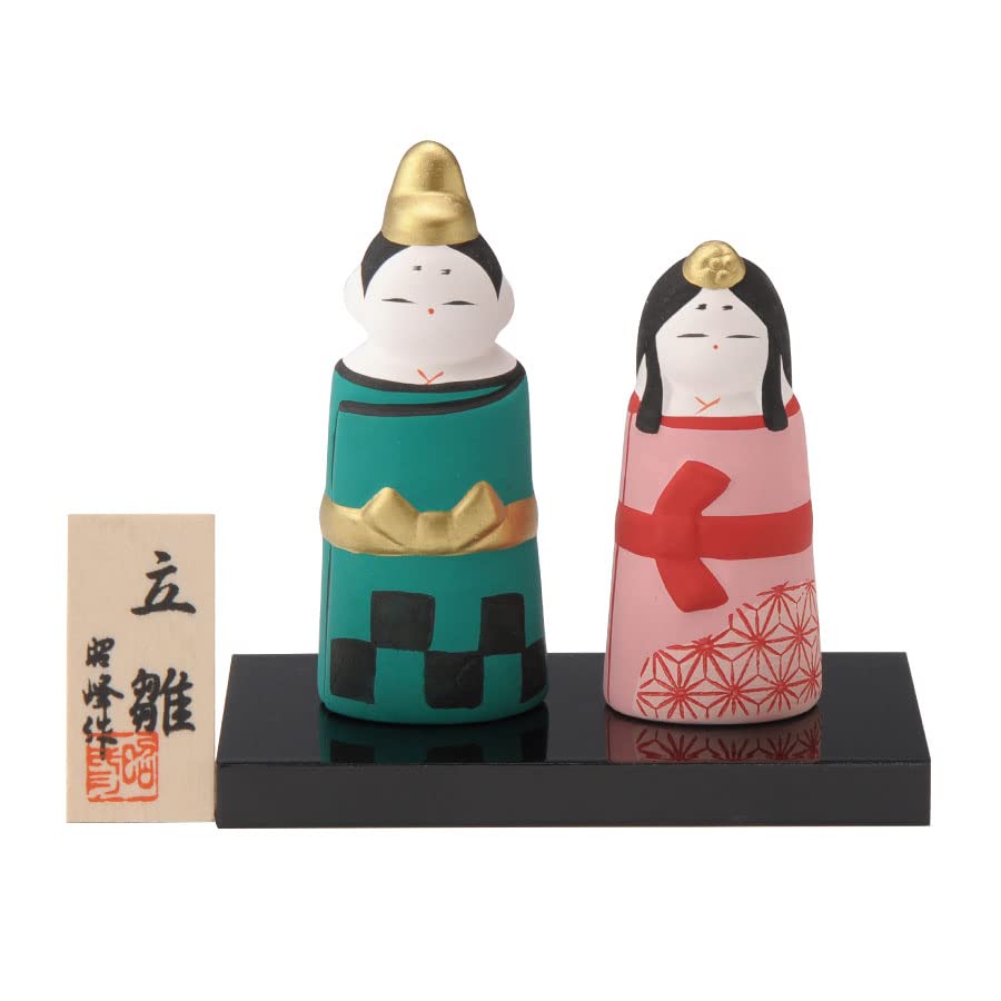 Seto Togei Hina Doll Compact Checkered and Asanoha Pattern Hina Ceramic Figurines by Set, Dolls, Akimine, (Male) 8.2cm (Female) 6.9cm