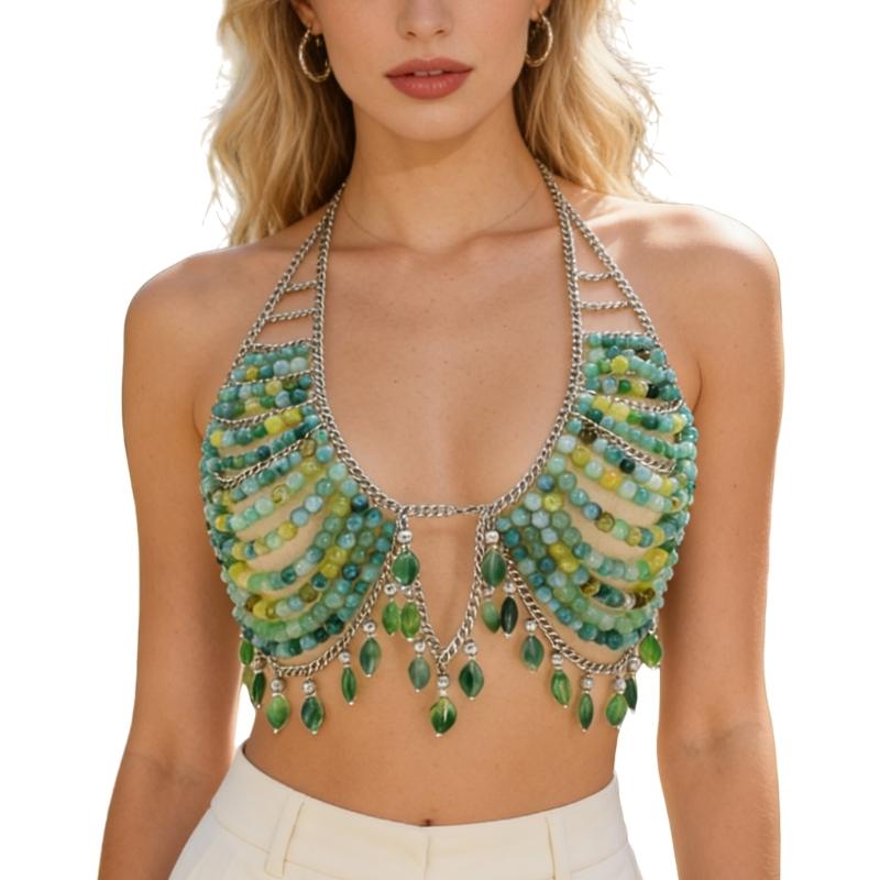 Featuring delicate green pearls in bead designs, this elegant green necklace adds vibranting color to elevating your look and complement diverse fashion outfits effortlessly.