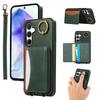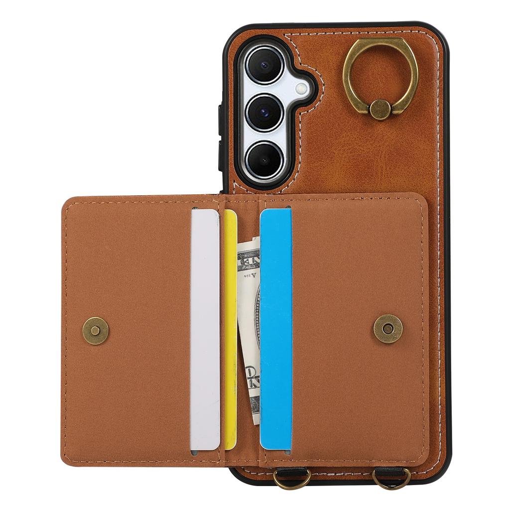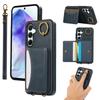 For Samsung Galaxy A54 5G PU Leather Back Case Card Holder Kickstand Phone Cover with Wrist Strap