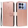 For Xiaomi Redmi K70 Ultra PU Leather Cases Flower Pattern Wallet Stand Phone Cover with Strap