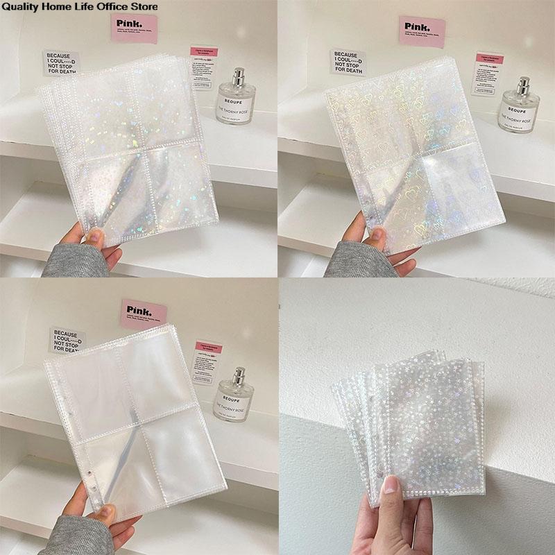 10PCS Inner Page Photocard Binder Multi-Pockets Kpop Sleeves Photo Album Page Idol Photo Card Protector Book 1/4 Grids 3/6 Holes
