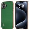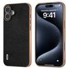 ABEEL For iPhone 16 Case Genuine Cow Leather+PC+TPU Electroplating Phone Cover