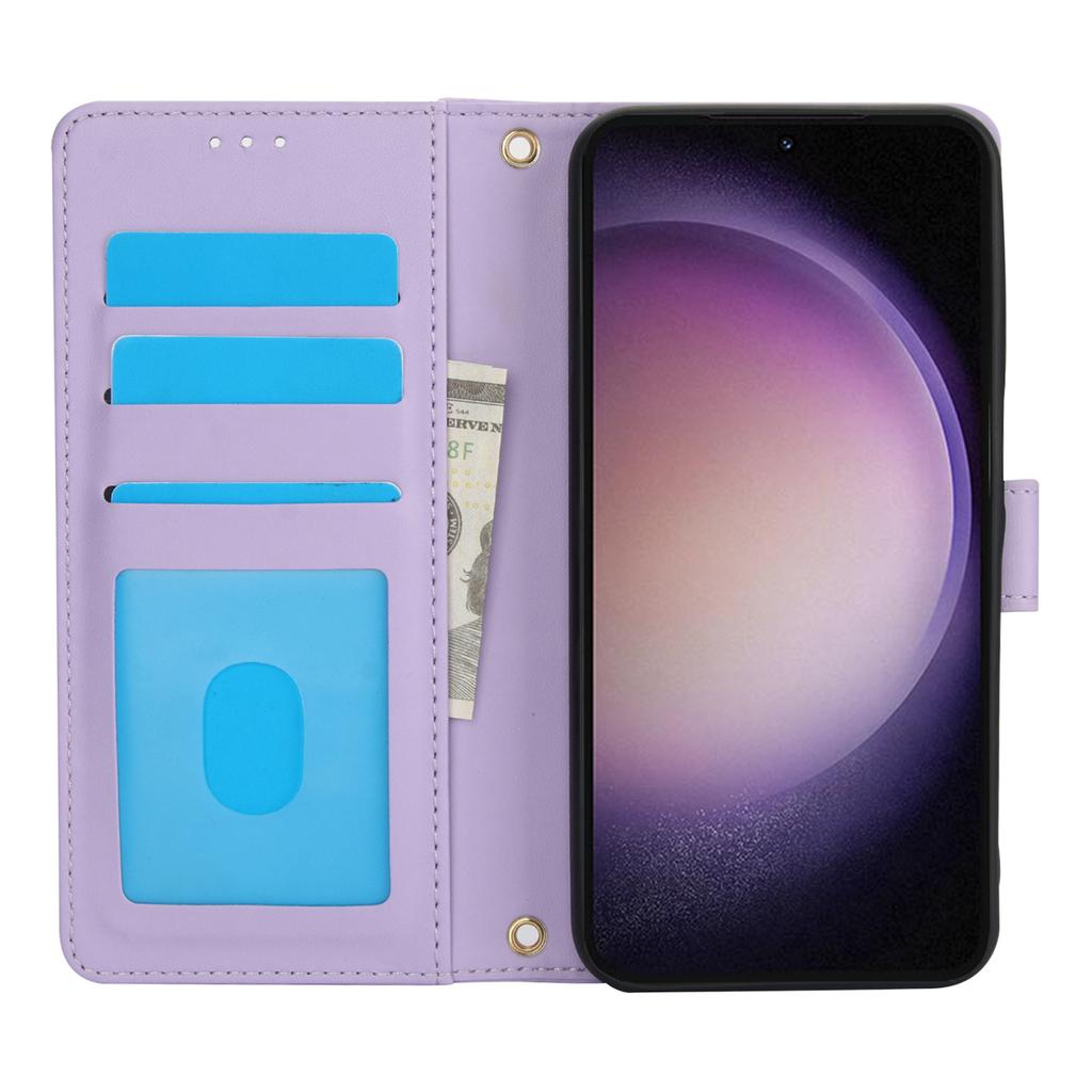 SY-003 For Samsung Galaxy S24+ Case PU Leather Stand View Phone Wallet Cover with Hand Strap
