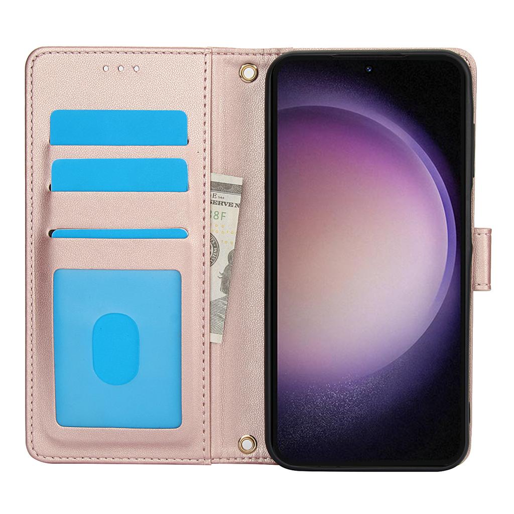 SY-003 For Samsung Galaxy S24 Case PU Leather Stand View Phone Wallet Cover with Hand Strap