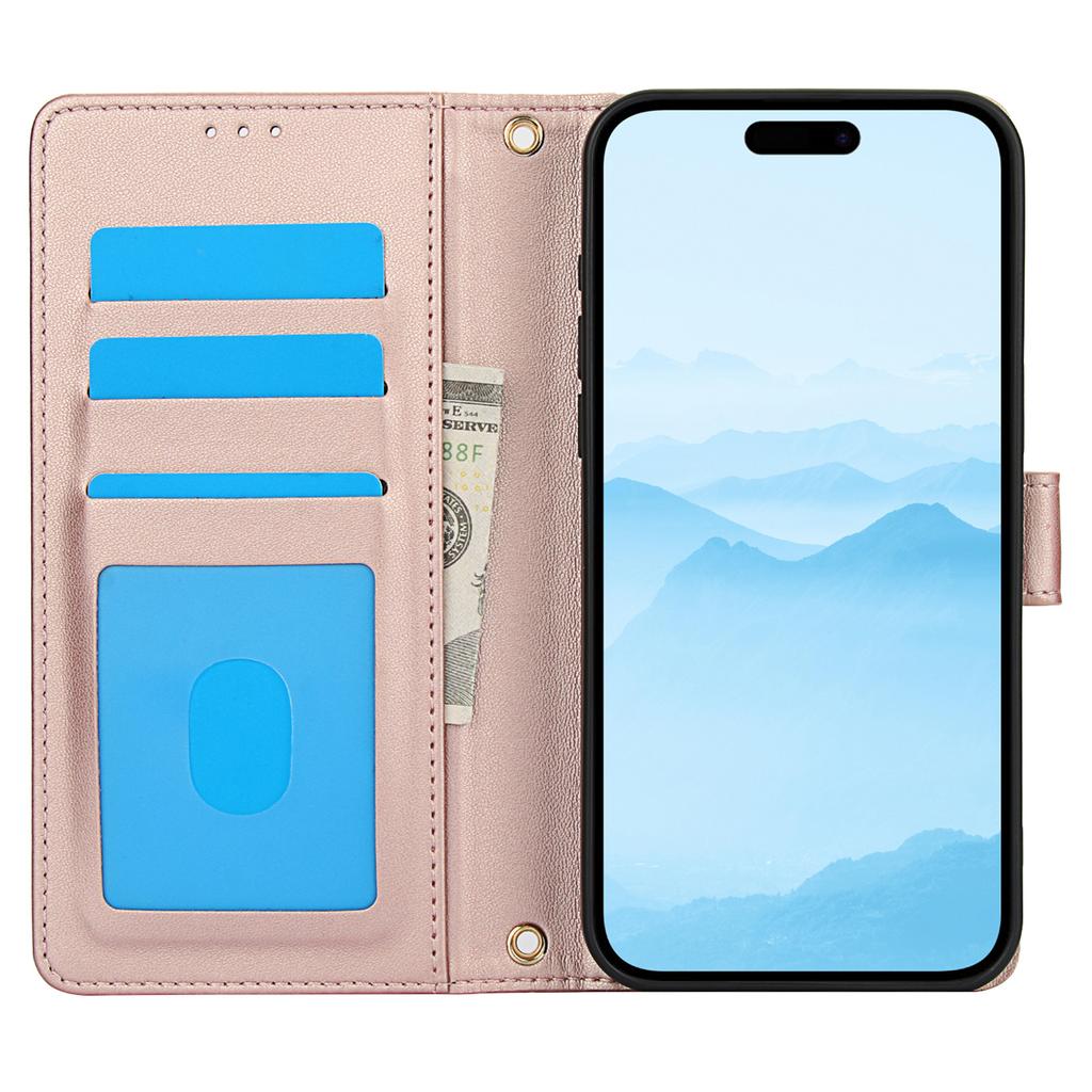 SY-003 For iPhone 15 Pro Max Case PU Leather Stand View Phone Wallet Cover with Hand Strap