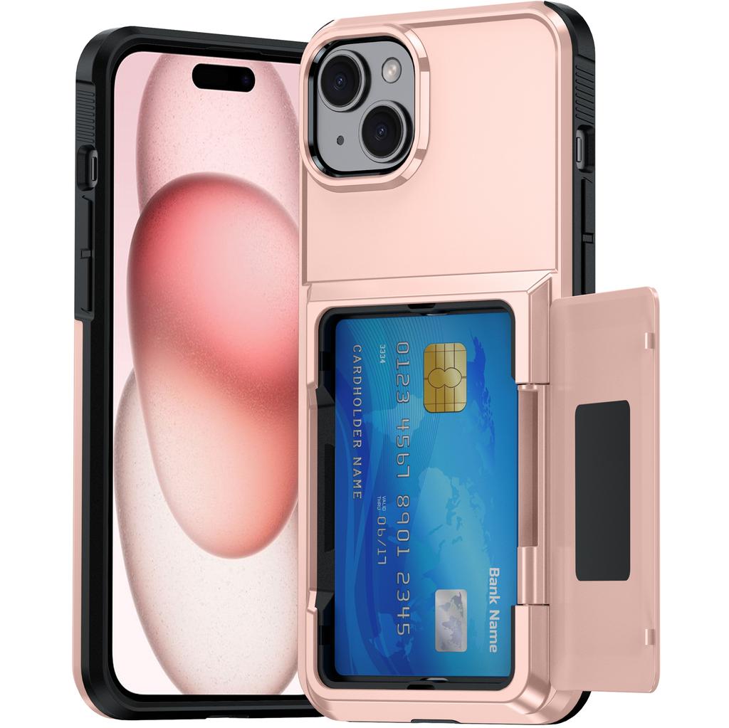 For iPhone 15 Cases Card Slot TPU+PC Kickstand Phone Case