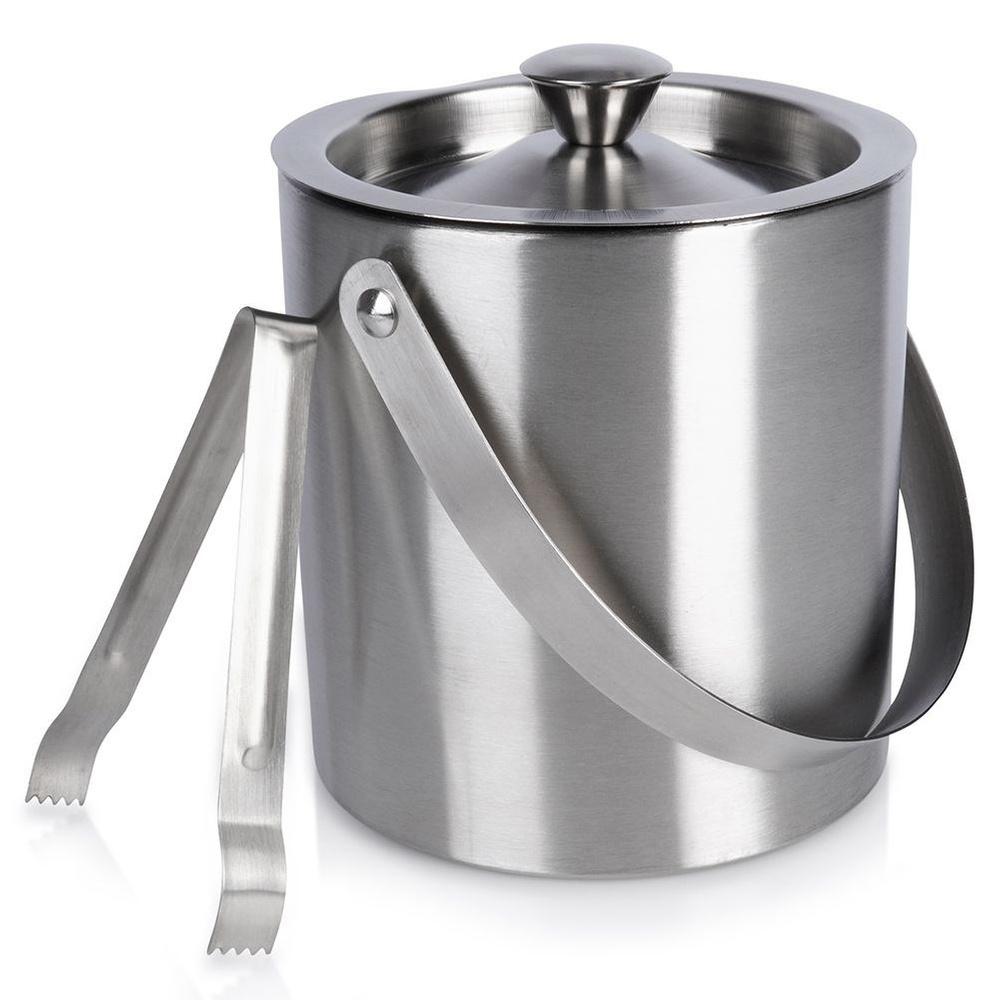 STEEL THERMAL ICE BUCKET THERMAL CUBE BUCKET + TONGS THERMAL- Thermal ice bucket with tongs, handle, and lid. This bucket allows you to serve ice for drinks in an attractive way. The bucket measures 15 x 16 cm and has a capacity of 1.7 liters. A 14 cm long tong is included.