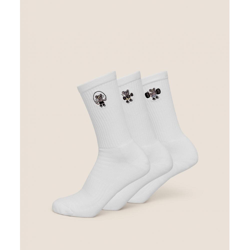 Gymshark Gymrat Graphic Crew Socks 3pk Gs White I2c4x Wb57