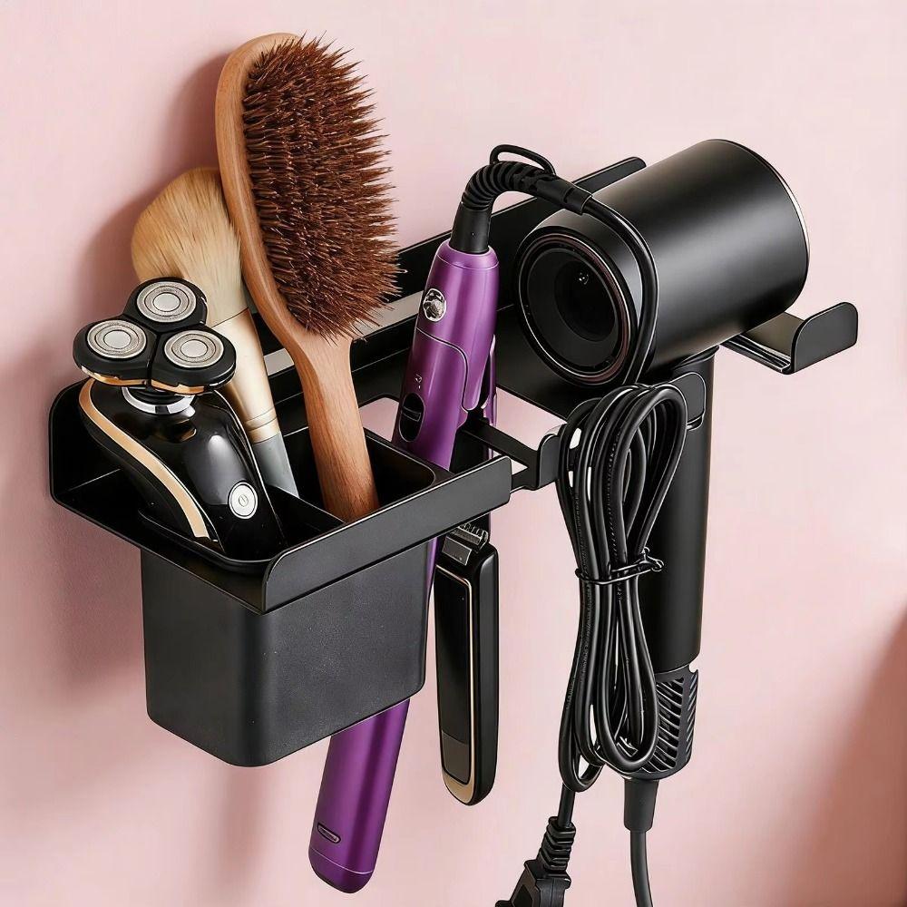 Space Saving Blow Dryer Hanger Carbon Steel Curling Iron Shelf Hair Dryer Holder Hairbrush