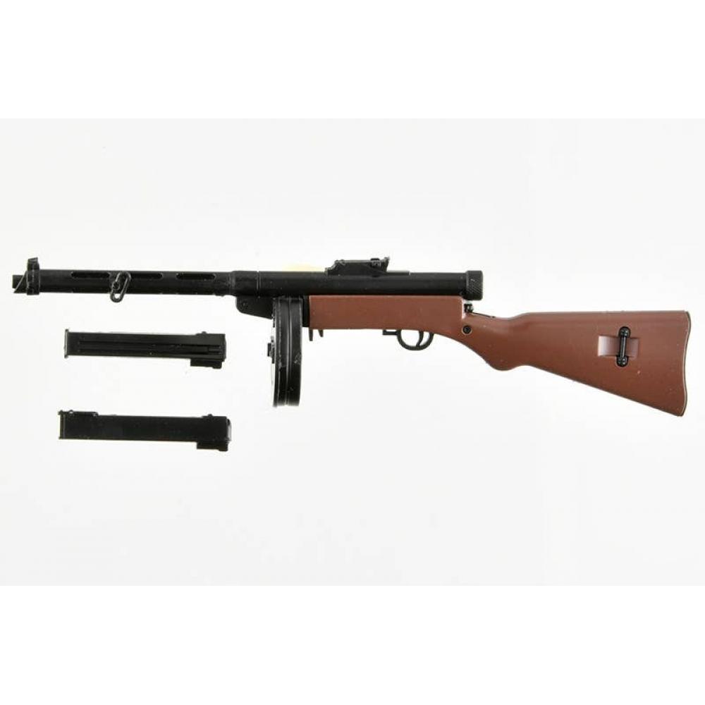 This product is Tomytec's Little Armory series LA-DF34, a collaboration version with the game Girls' Frontline 2: Exilium. It is a 1/12 scale plastic model kit that reproduces the Suomi KP/-31 submachine gun developed in Finland. This weapon is historically famous for being used by sniper Simo Häyhä and was specifically developed for Finland. The completed gun measures approximately 70mm in length. The product also includes a display card for showcasing alongside characters.