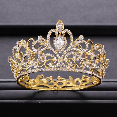 טיארה כלה בסגנון ארמון אירופאי חדש, סגסוגת מעגל שלם עגול ריינסטון בארוק כתר כלה