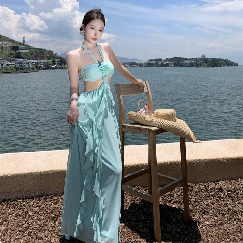 Neck Tube Top Ruffle Leaf Edge Halter Dress Women's Summer New Seaside Vacation Beach Dress