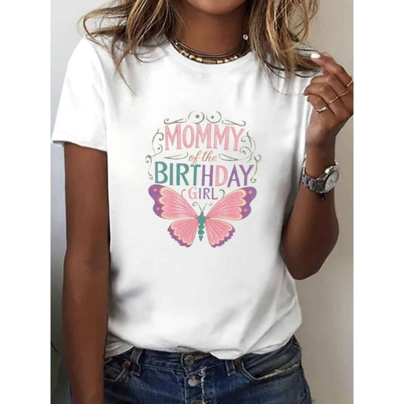 European Size European Size A Printed T-Shirt for The Birthday Mother, Featuring Short Sleeves And a Round Neck, Perfect for Casual Wear in Spring