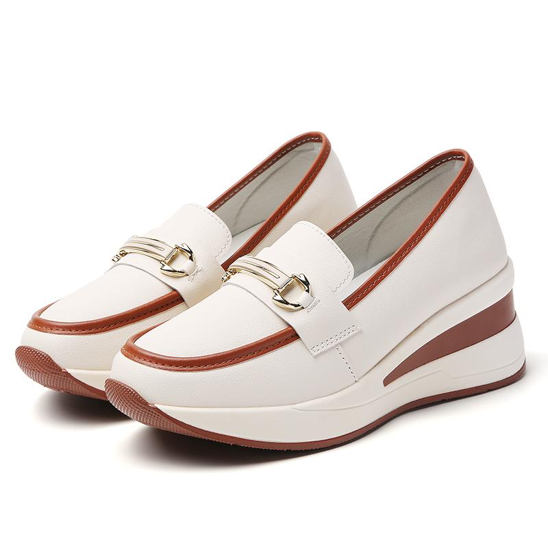 Women Slip on Platform Loafers Casual Leather Business Office Shoes Thick Sole Height Increase Shake Shoes Large Size